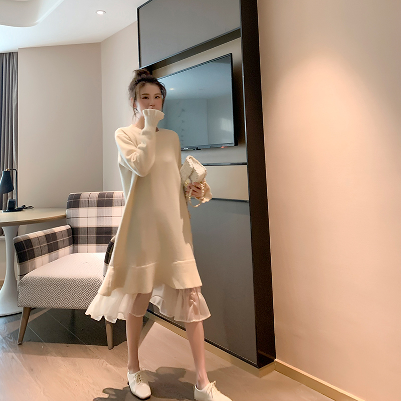 Nursing sweater women's autumn and winter clothes to go out fashion hot mom dress postpartum nursing clothes mid-length winter tide