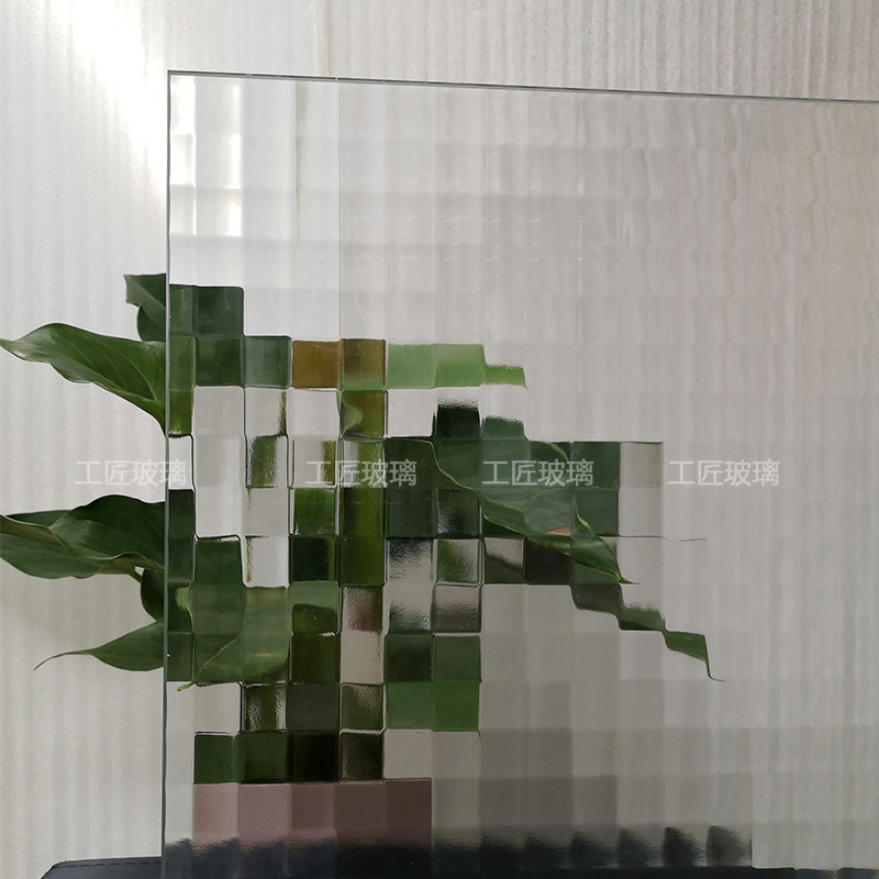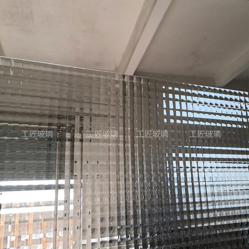 Customized 5mm double lattice art glass embossed three-dimensional lattice screen stainless steel hot bending glue gradient