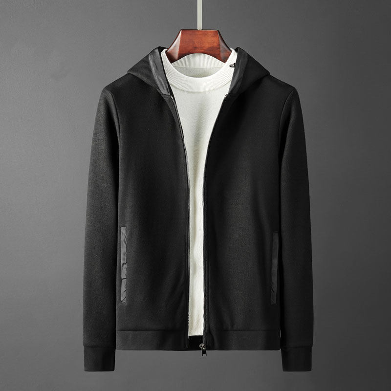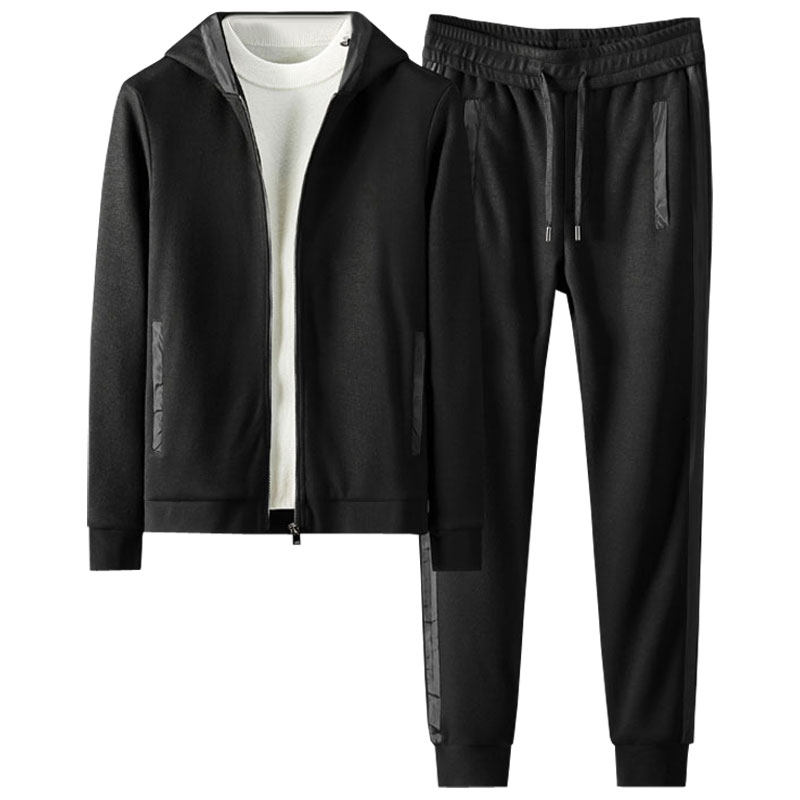 19 Autumn and Winter New Wool Suit Men's Fashion Hooded Stitching Slim Knitted Sweater Sports and Leisure Suit