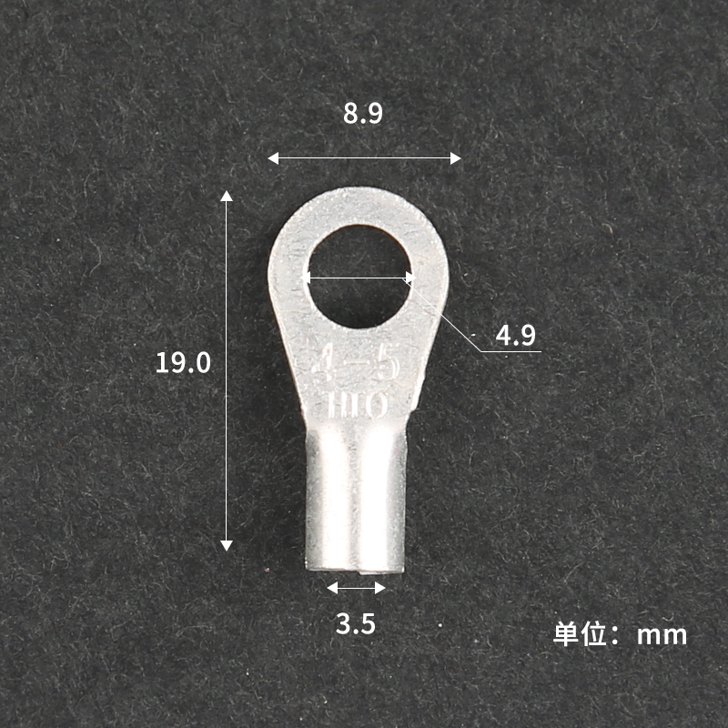 Cold-pressed bare terminal OT4-5 terminal lug O-shaped round copper terminal 4 square terminal nose connector M5 hole