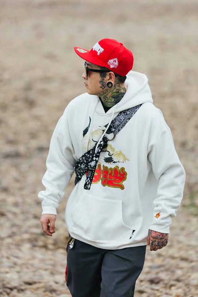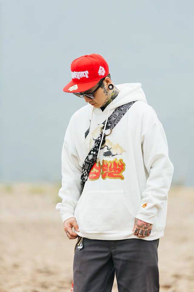 (RELAXSPOT) wrapped in BURNINcsc classic white sand cranes printed bronzed font hoodie