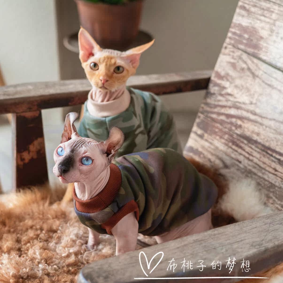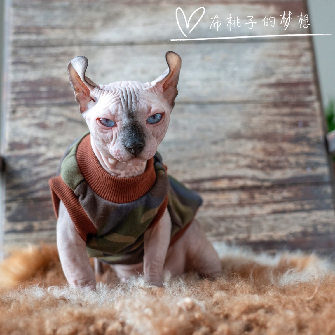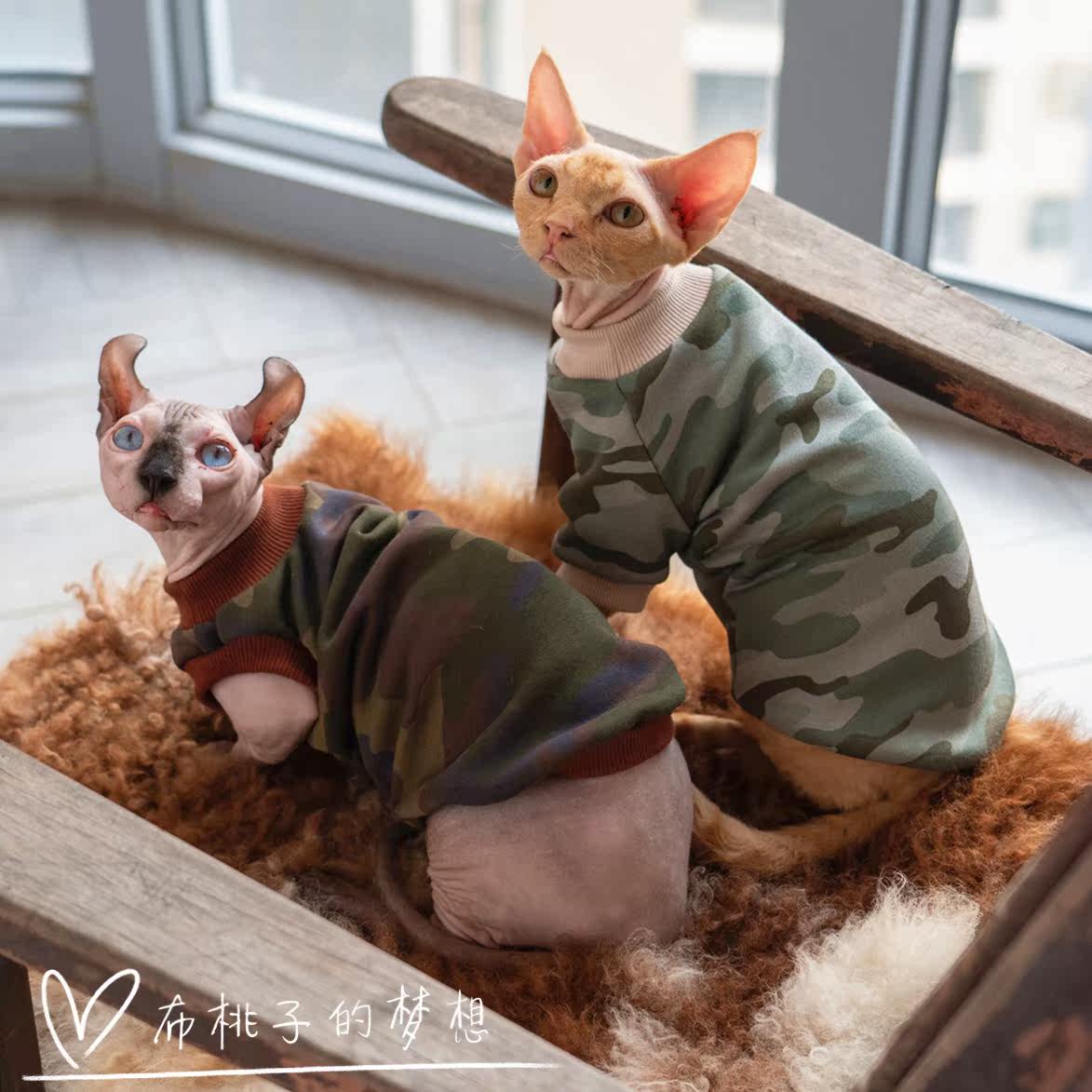 GINGERAIN hairless cat Devon clothes Sphinx camouflage Special Forces fleece thick cotton T