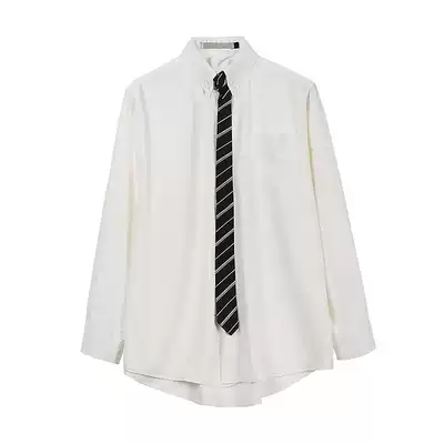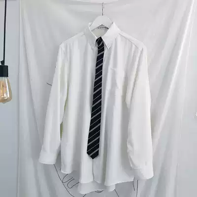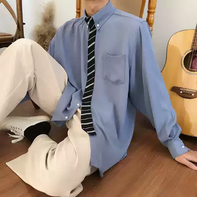 19studio tie one-piece shirt Korean Academy style couple wild solid color long sleeve loose shirt men