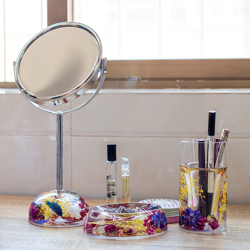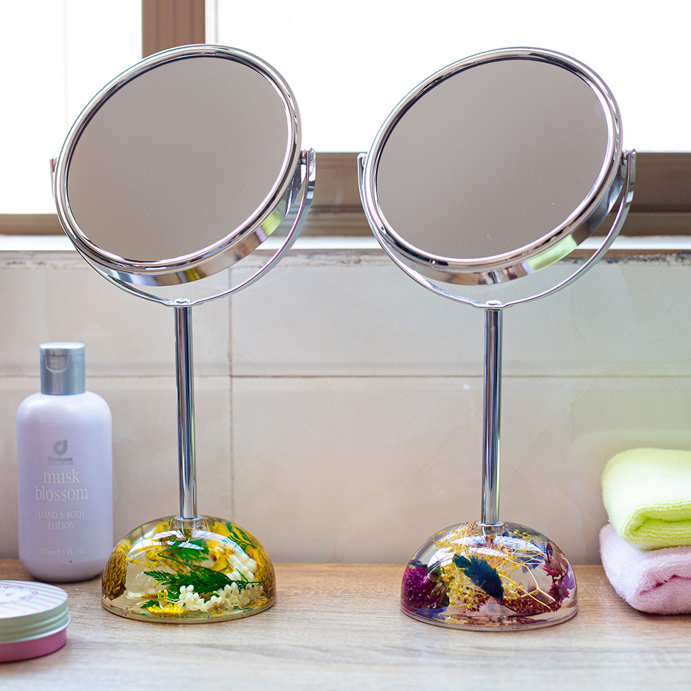 European style HD desktop makeup mirror mirror dressing mirror double-sided mirror princess mirror beauty mirror magnified desktop floating flower