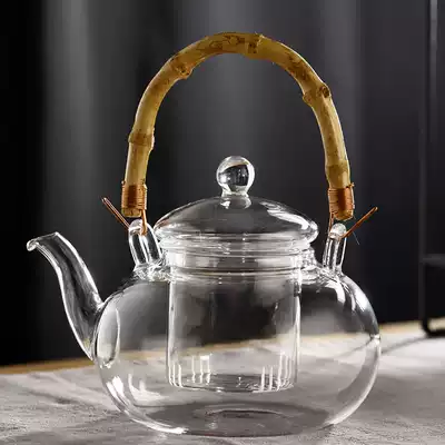 Explosion-proof bamboo beam glass teapot tea breinner open flame heating black crystal stove pot tea set home cooking teapot