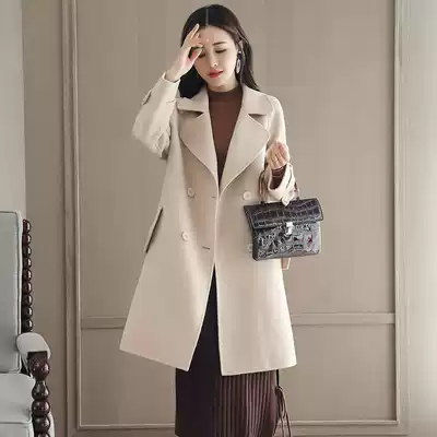 Woolen coat women's medium and long version of the 2021 spring and autumn new women's fashion temperament Korean version of the spring women's woolen coat