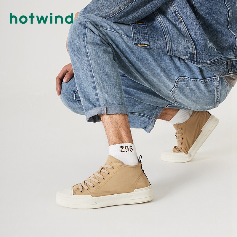 Hotwind hot wind high-top canvas shoes men's Korean version ulzzang trend 2020 spring new flat shoes