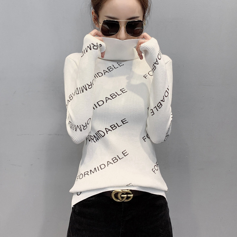 European station autumn and winter new turtleneck sweater women's long-sleeved letter printing slim fit and thin inner knitted bottoming shirt