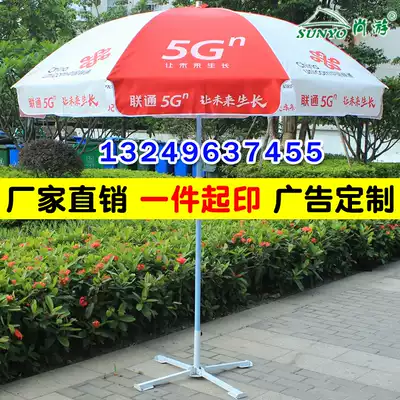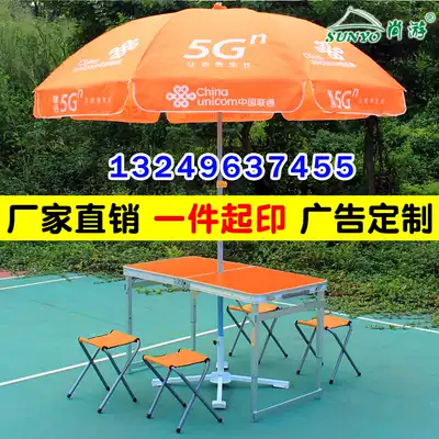 China Unicom 5G advertising umbrella Outdoor stall folding table and chair with parasol Orange parasol custom printed word