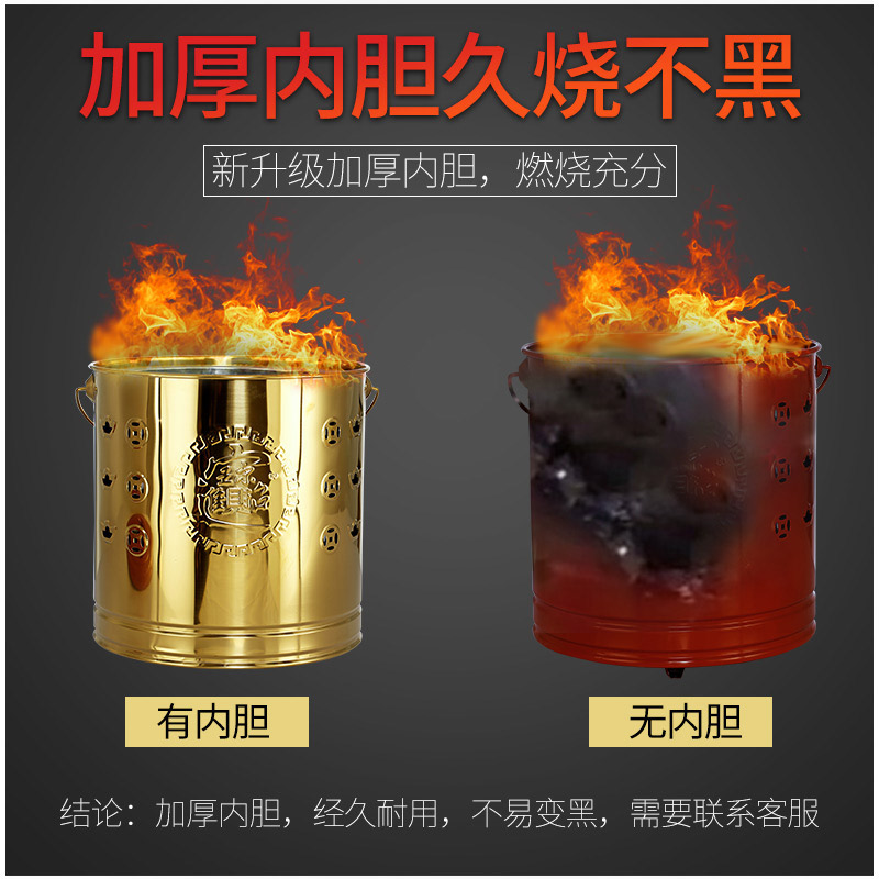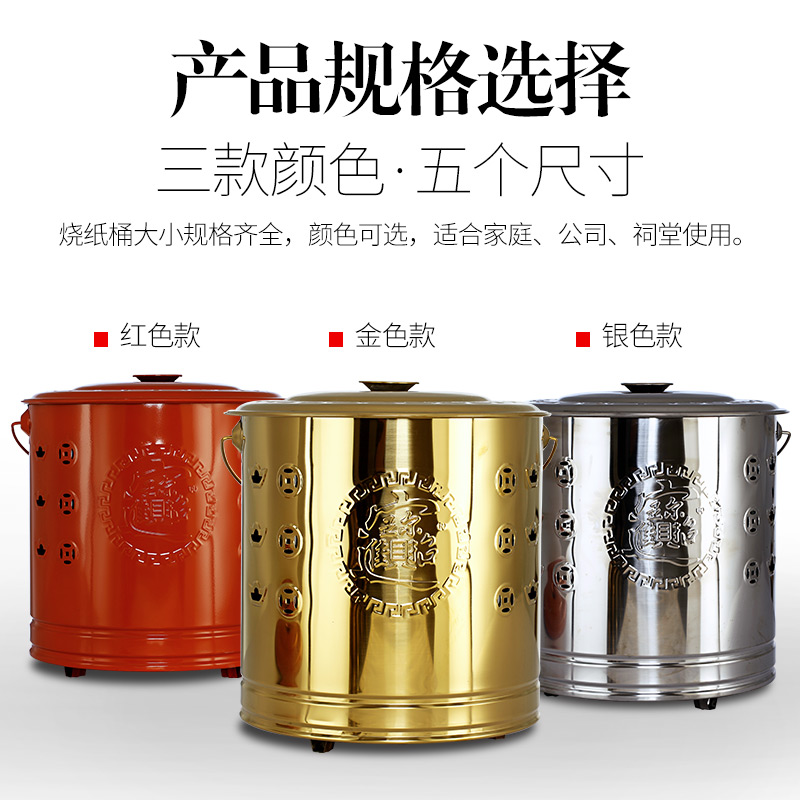 Burning paper sacrifice special barrel stainless steel burning ingot barrel incinerator thickened burning paper barrel home indoor extra large gold barrel