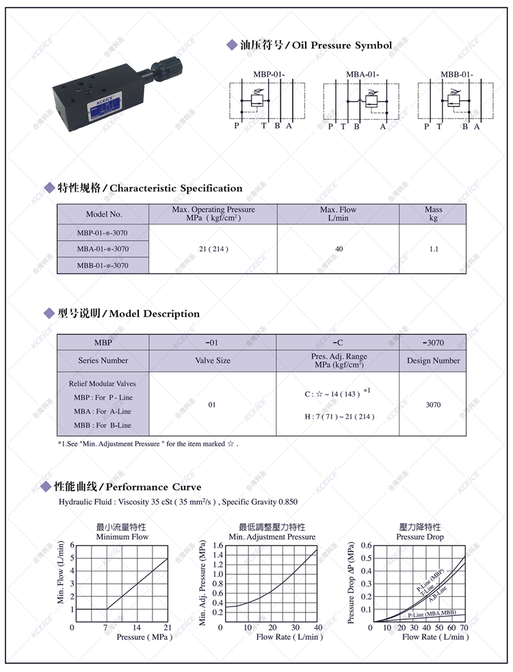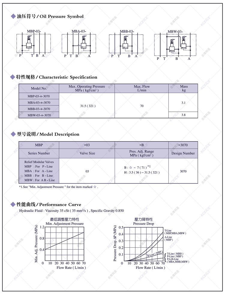 Modular Relief Valve MBP MBA MBB MBW-01 03 04-B C H-20 30 Taiwan hydraulic valve 70