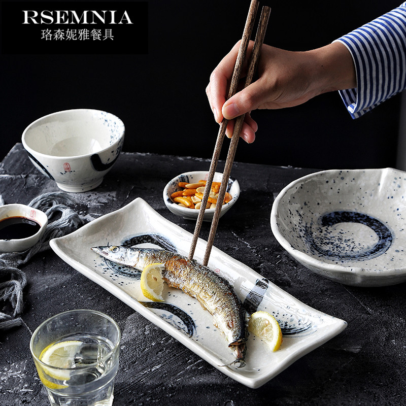 Rsemnia Creative Ceramic Japanese Tableware Two or Four-Six Food Package Dish Dish Plate Spoon Household