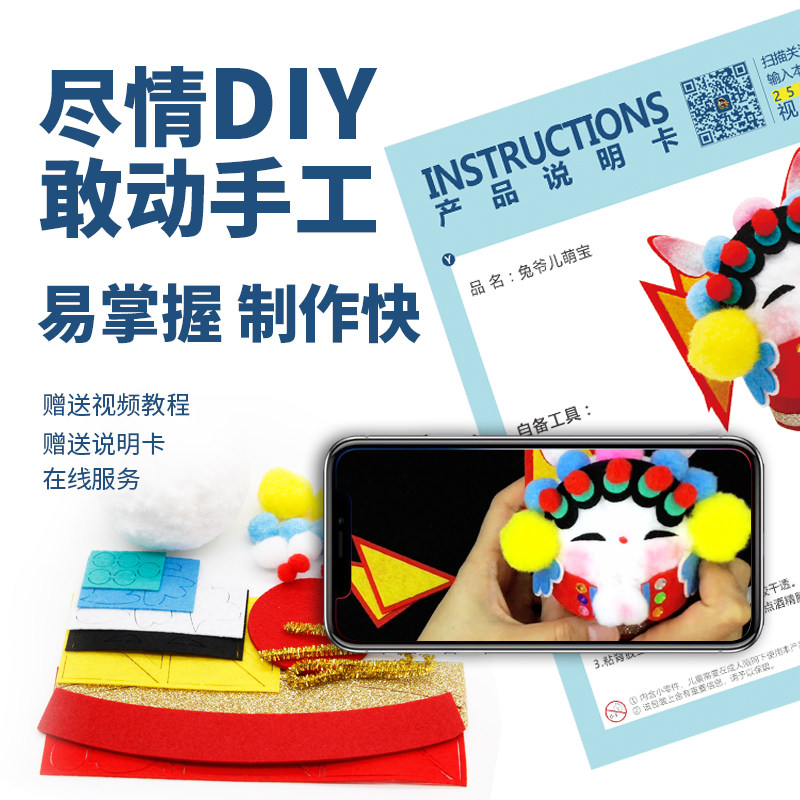 Rabbit Master parent-child handmade diy production Creative materials bag table decoration Non-woven art Pompom National tide gift