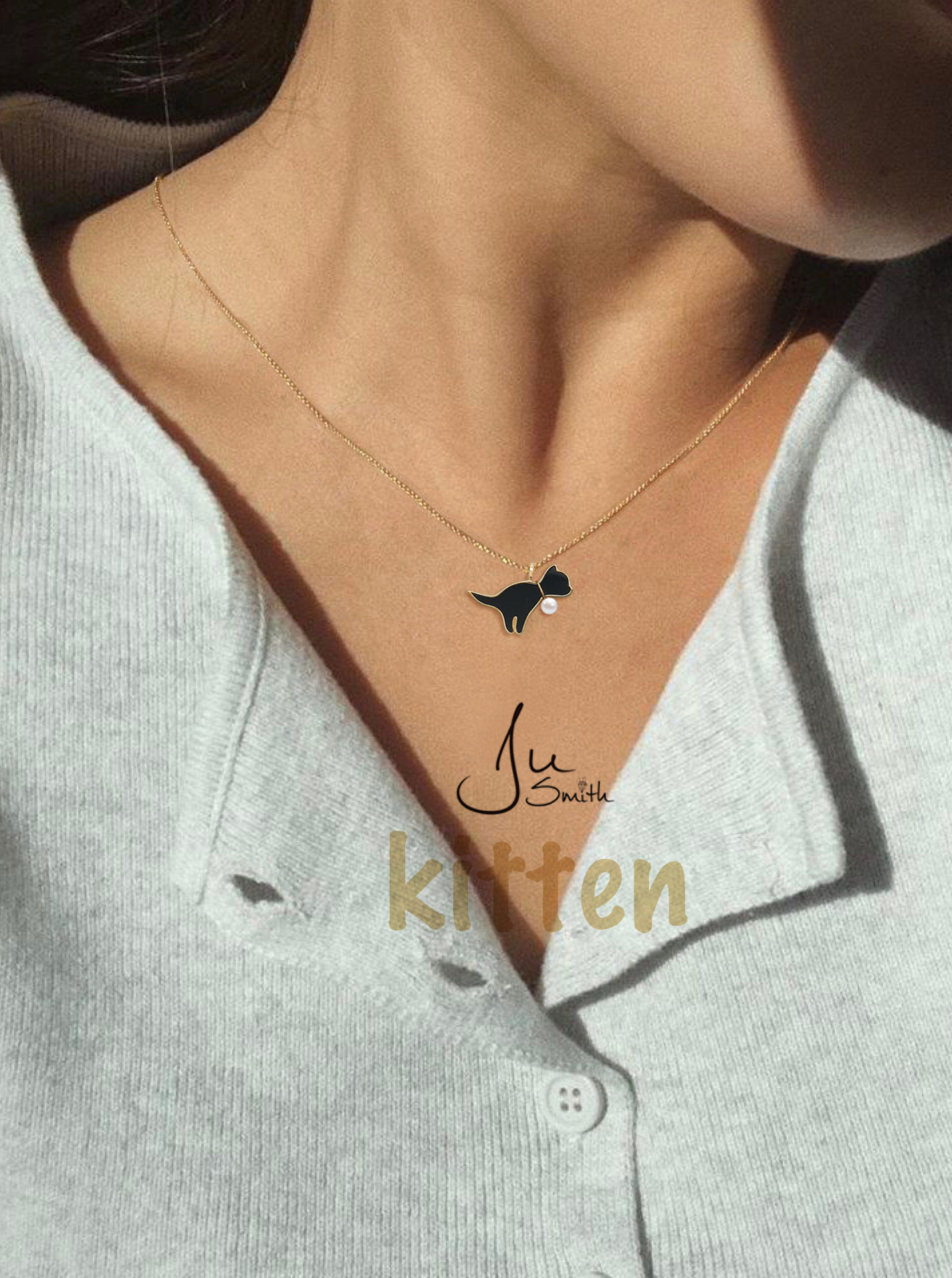 Ju Smith Original Jewelry Cat Lady series 18k Golden wearing pearl bell Black Cat Baby-Taobao