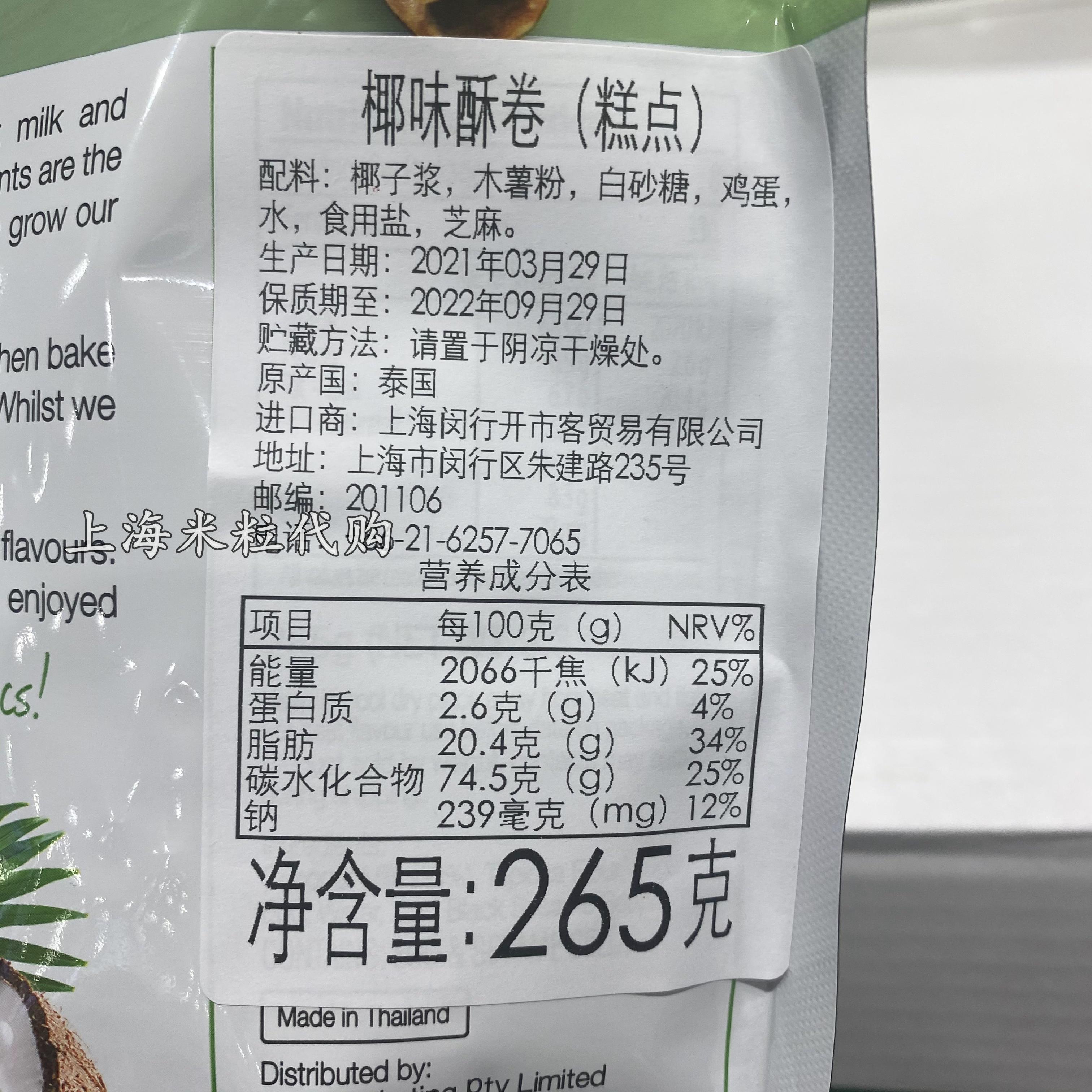 Thai imports TROPICAL Coconut Milk Crisp Rolls 265 gr Coconut Egg Roll Shanghai Costco Opened Guest