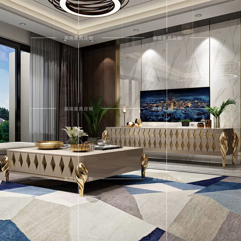 Light luxury post-modern TV cabinet villa model room furniture custom simple solid wood paint floor cabinet video cabinet