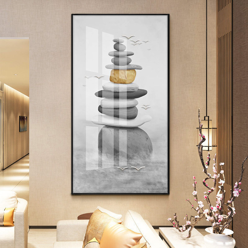 Modern minimalist entrance to the family Xuanguan Decorative Painting Vertical version crystal porcelain painting Living room hanging painting New Chinese corridor light and luxurious aisle painting
