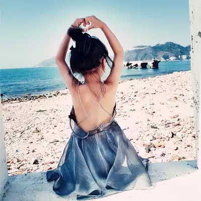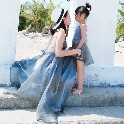 Parent-Child beach dress 2021 New suspender sexy backless dress dress dress fairy seaside holiday mother dress