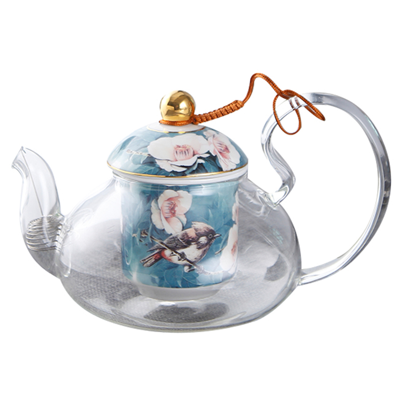 Beauty Channel Glass Pot Flower Teapot Heat Resistant Transparent With Lid Filter Heating Bubble Teapot Field Garden Wind Flowers And Grass Tea tea Set