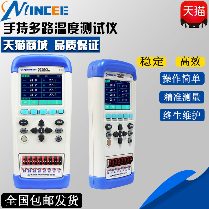 Amber AT4208 handheld multi-channel temperature tester AT4204 AT4202 inspection instrument 248-way recorder