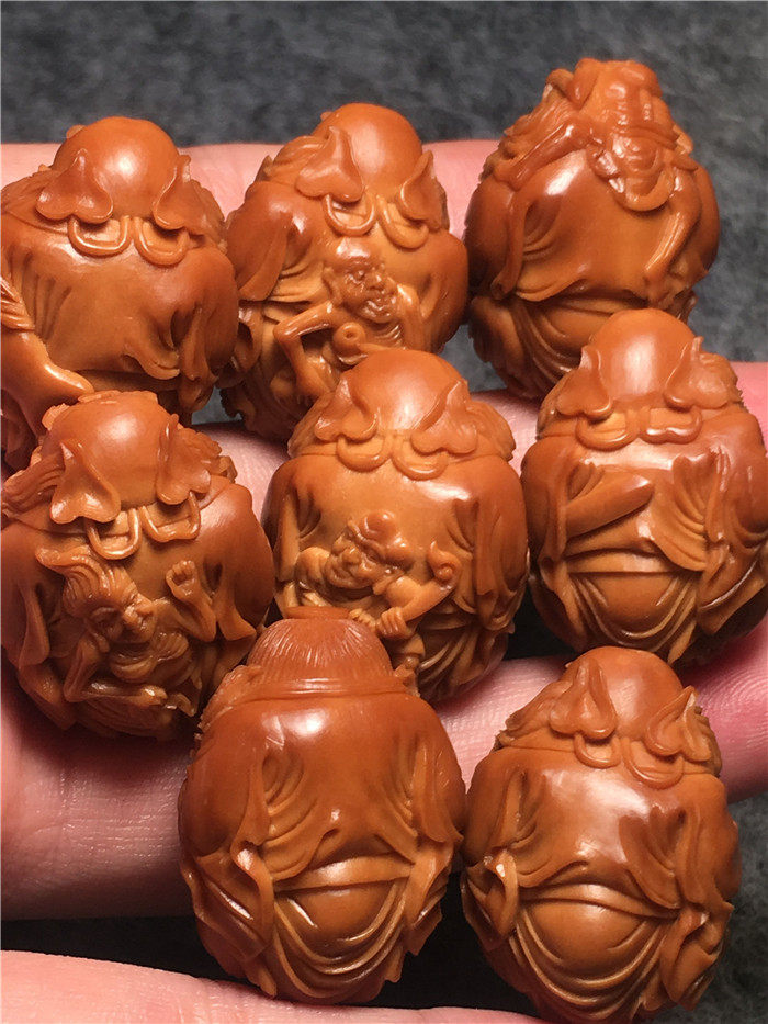 Su Gong famous Liu Xiaoqin handmade olive core carving fine text play 2 2*2 9 Zhong Kui play ghost hand string pieces