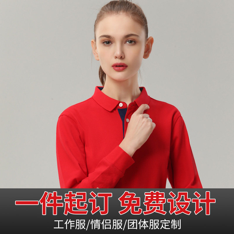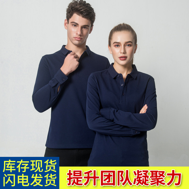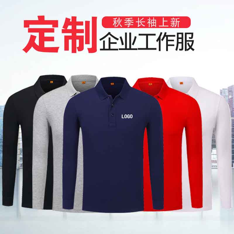 Long-sleeved polo shirt lapel work clothes T-shirt custom printed logo large size autumn with printed words