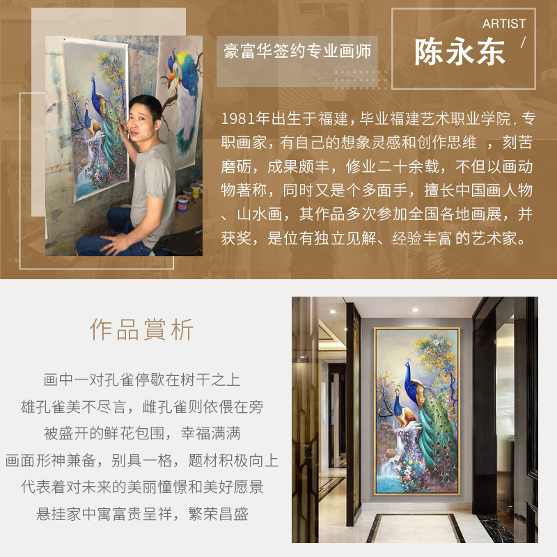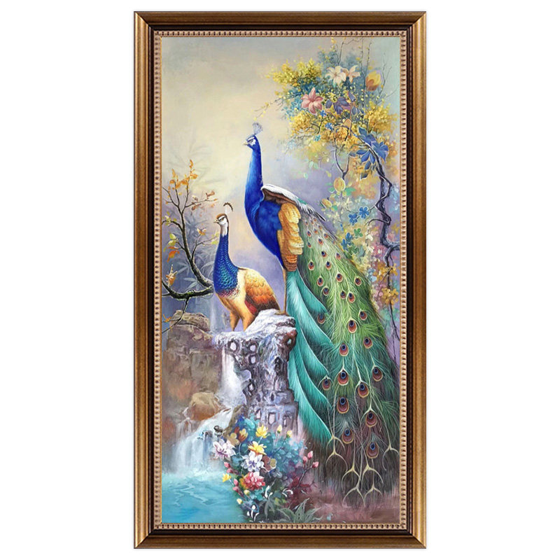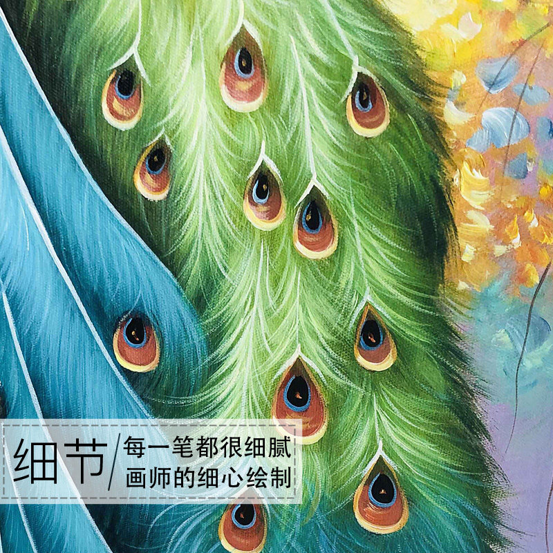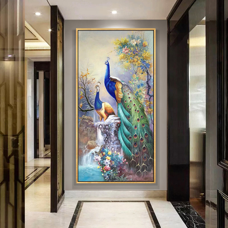 Light luxury American style living room vertical version into the entrance decoration painting pure hand-painted oil painting corridor corridor hanging painting peacock mural