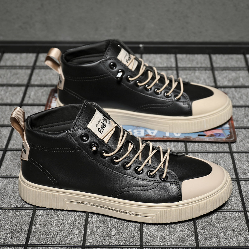 Fall Nets Red Shoes Men's Wave Shoes Han Edition Trends 100 Hitch Black Leather Face Medium-high Cylinder Board Shoes Boys Casual Shoes Summer
