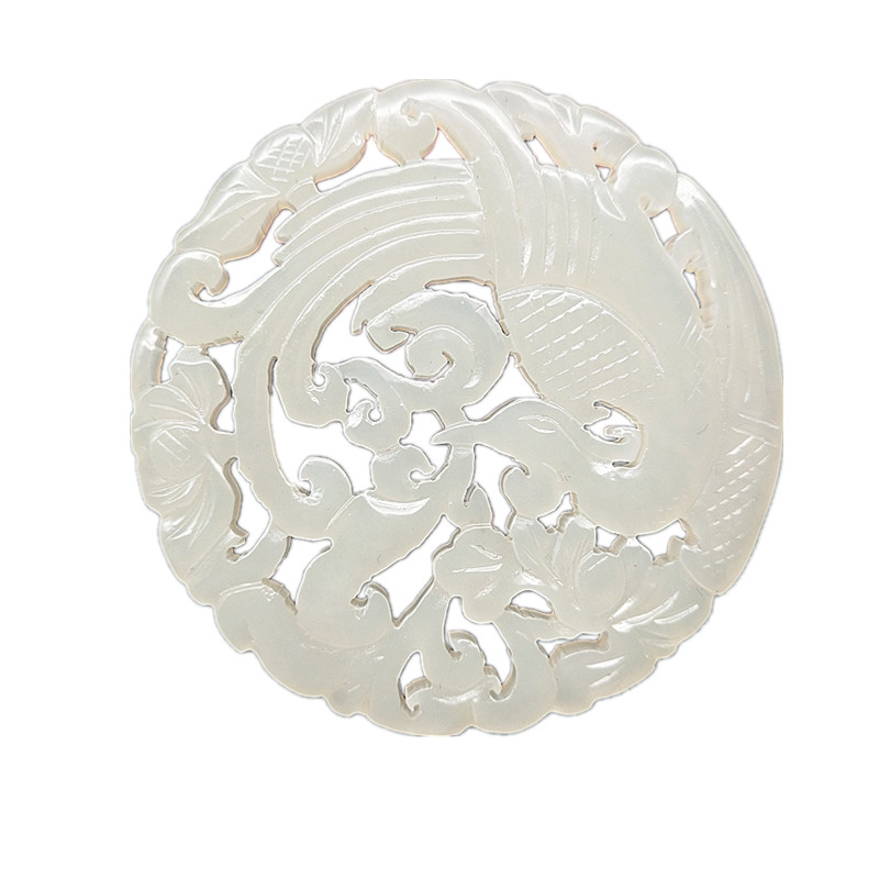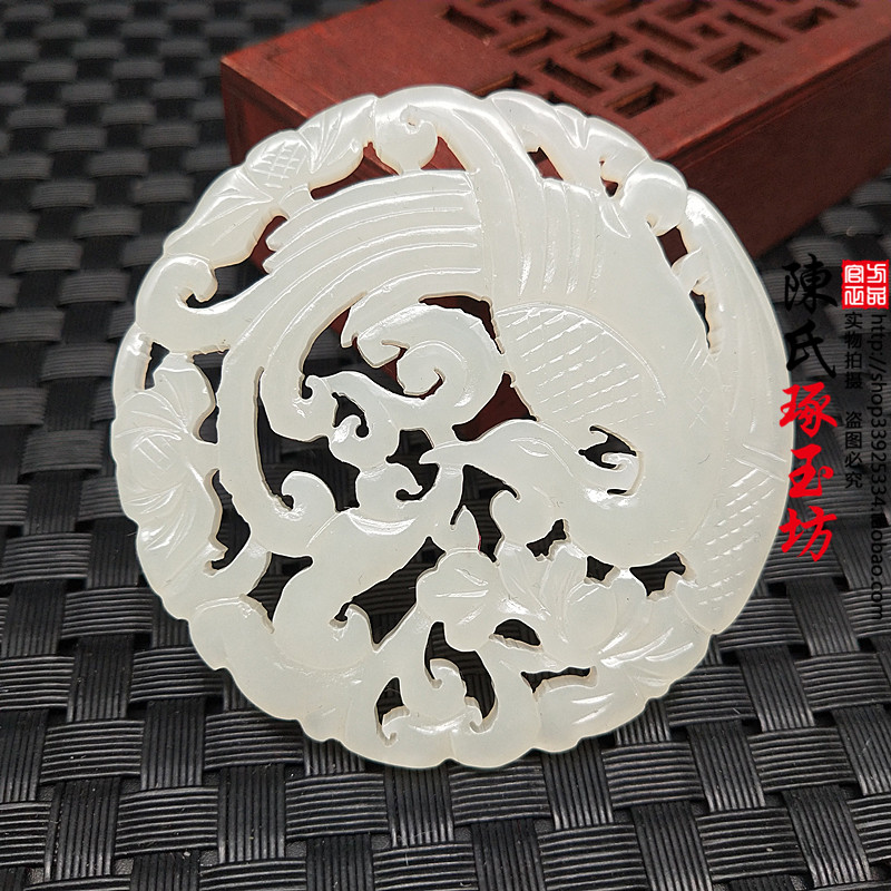 And Tian Yuqing Baiyu Phoenix jade pendant Liaojin Liaojin Yupei Yupei Yupei Double-sided hollowed-out engraving jade