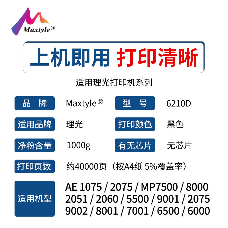 Maxtyle applies Ricoh MP7500 powder box 1075 2075 8000 8000 2051 5500 MP9001 cartridges 9002 80
