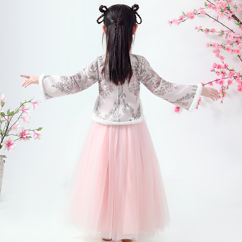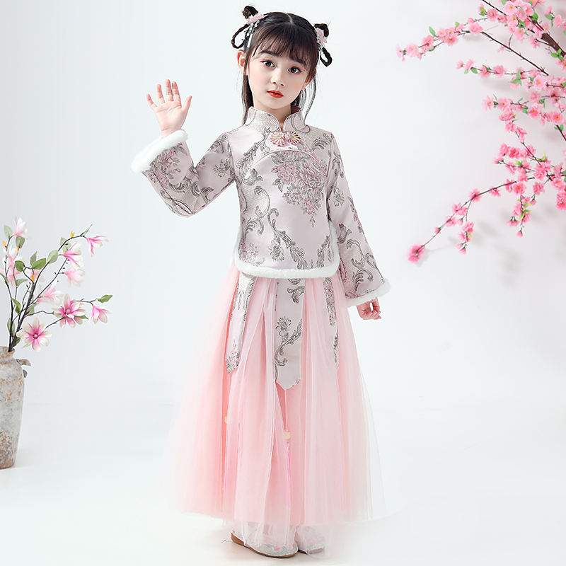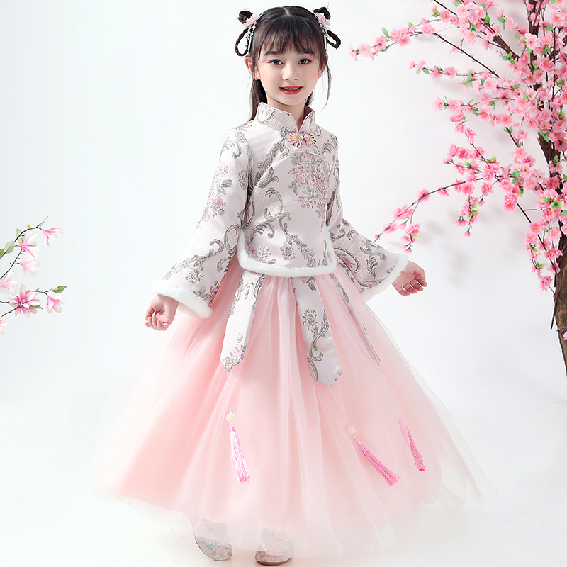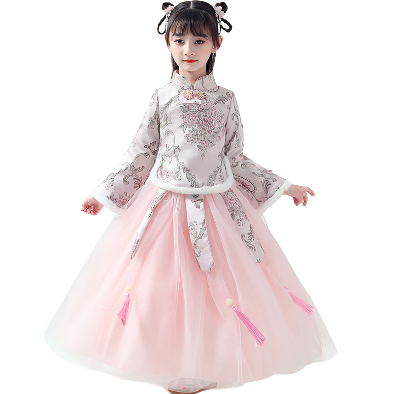 Hanfu Girls Winter China Wind Chinese Winter Clothing Autumn Winter Plus Suede Thickened Children Don's dress Women Long sleeves New Year's Eve wear