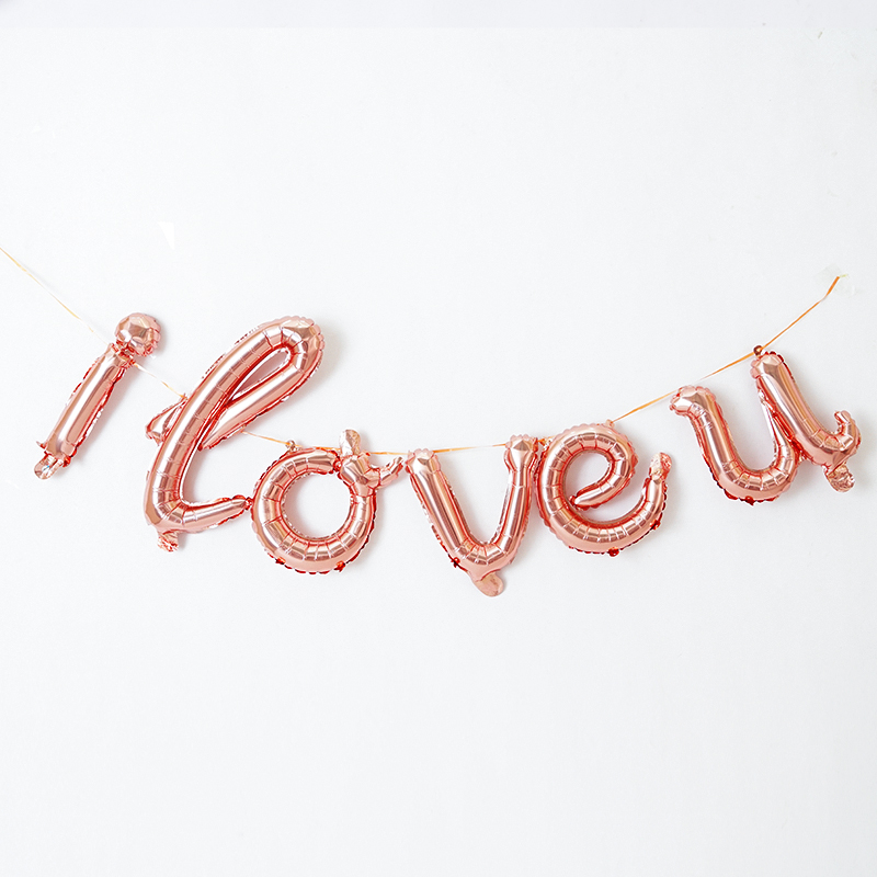 Lowercase I love you letter I love u rose gold silver aluminum balloon confession marriage proposal wedding room decoration