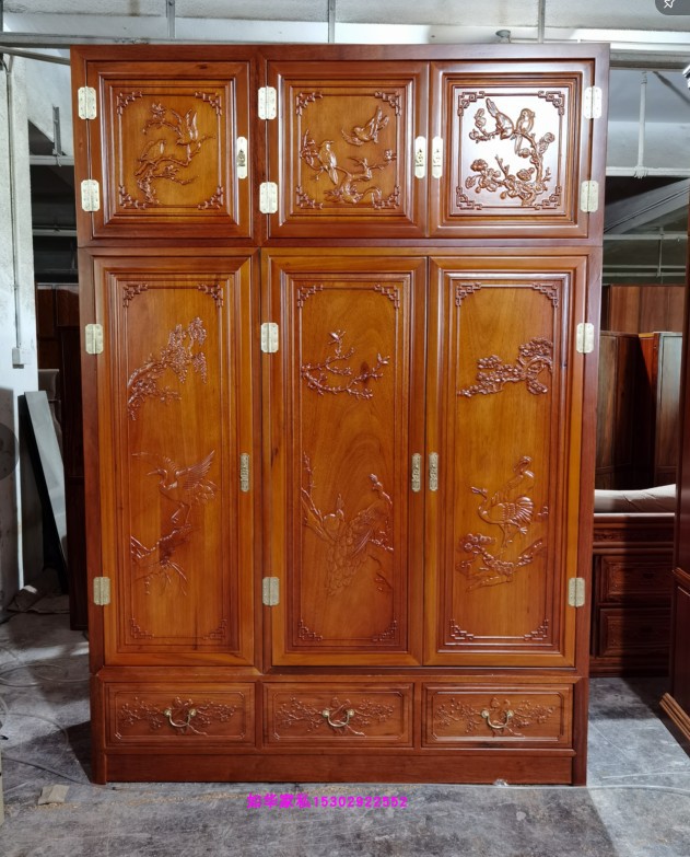 Full solid wood wardrobe four doors three doors Gerwood wardrobe Pinewood Gri Liga Plus Top Red Wood Large Cabinet Neoclassical