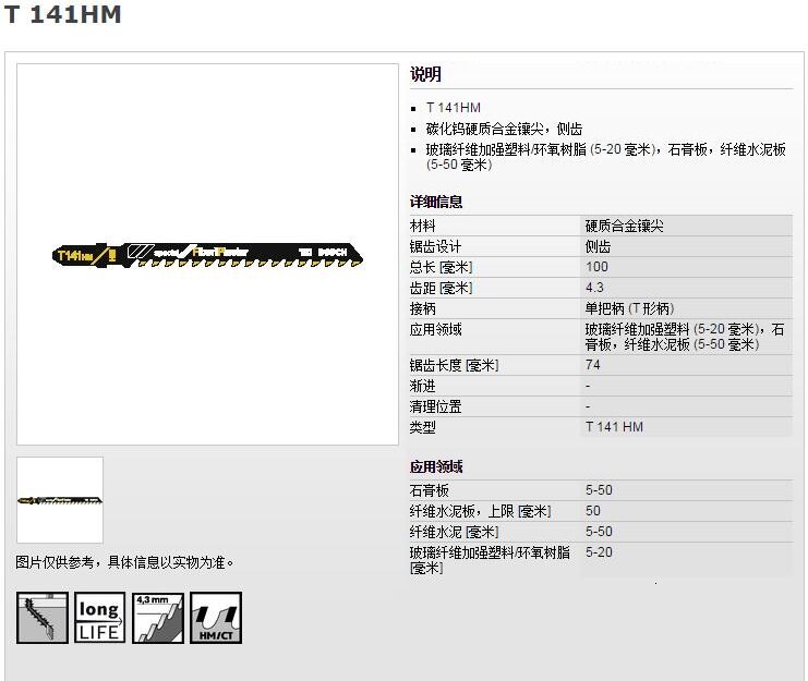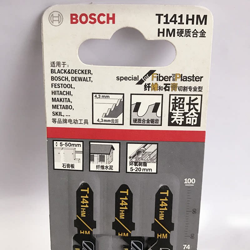 Bosch jig saw blade T141HM fiberglass plastic cement board 5-20 gypsum board brick wall tooth pitch 4 3mm
