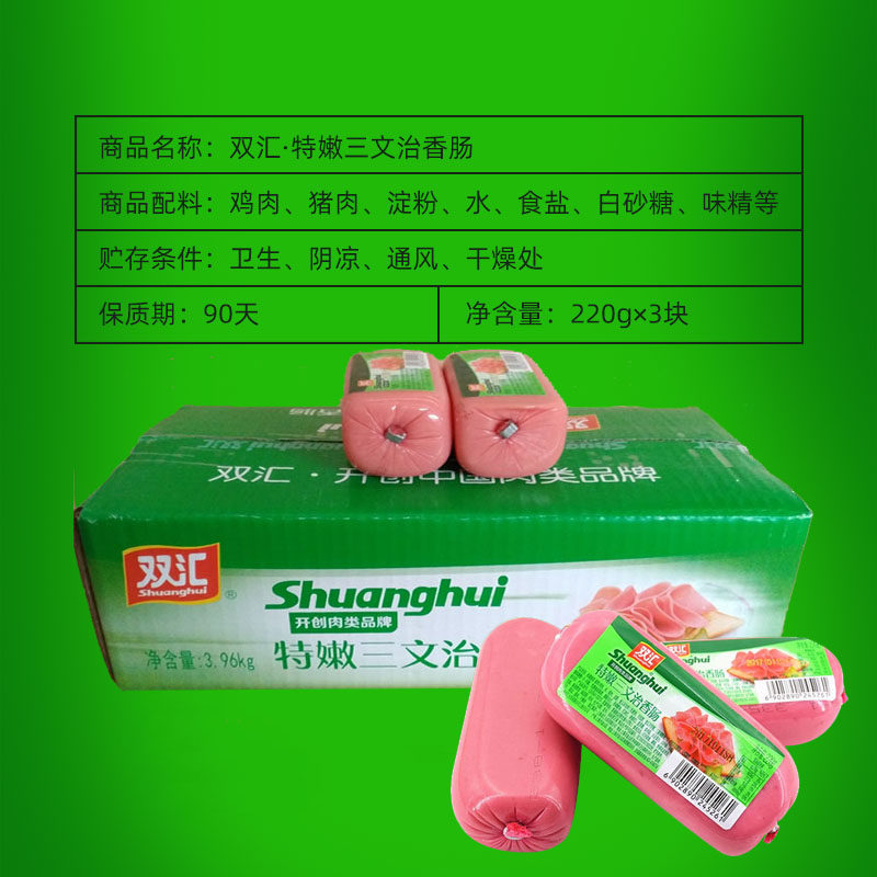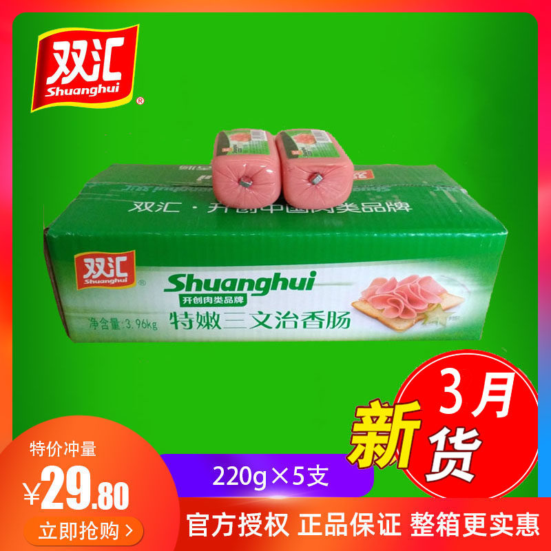 Shuanghui sausage tender sandwich sliced sandwich 220gx5 pieces breakfast coarse instant eat whole box