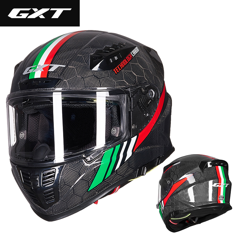 GXT carbon fiber locomotive safety hat winter anti-fog double lens full helmet men four season sports car locomotive covered