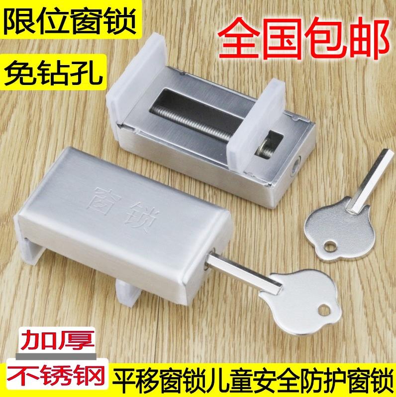 Indoor lock screen window anti-theft escape door lock sliding door and window sill stainless steel balcony baby Shuo glass