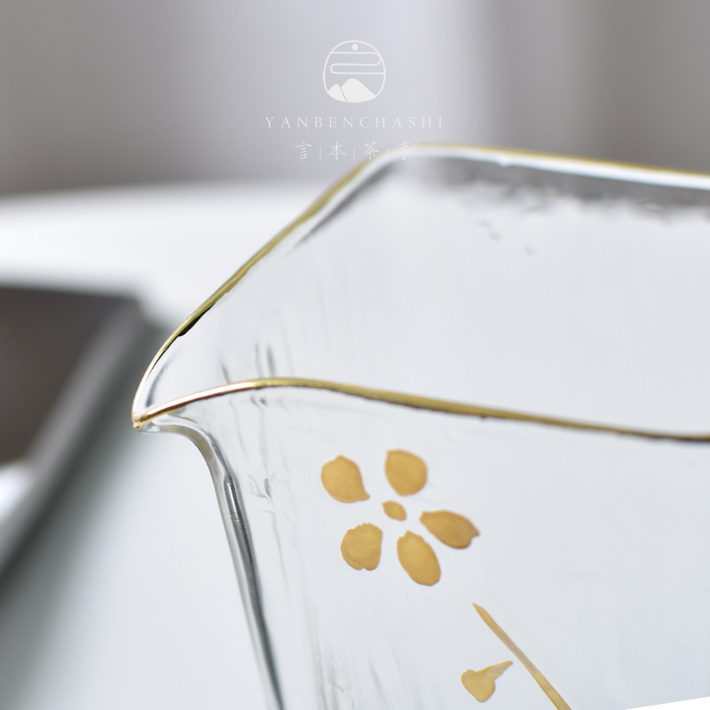 Word This heat resistant glass fair cup hand painted gold plum tea Thickened Creative Square Tea Set Fair Cup