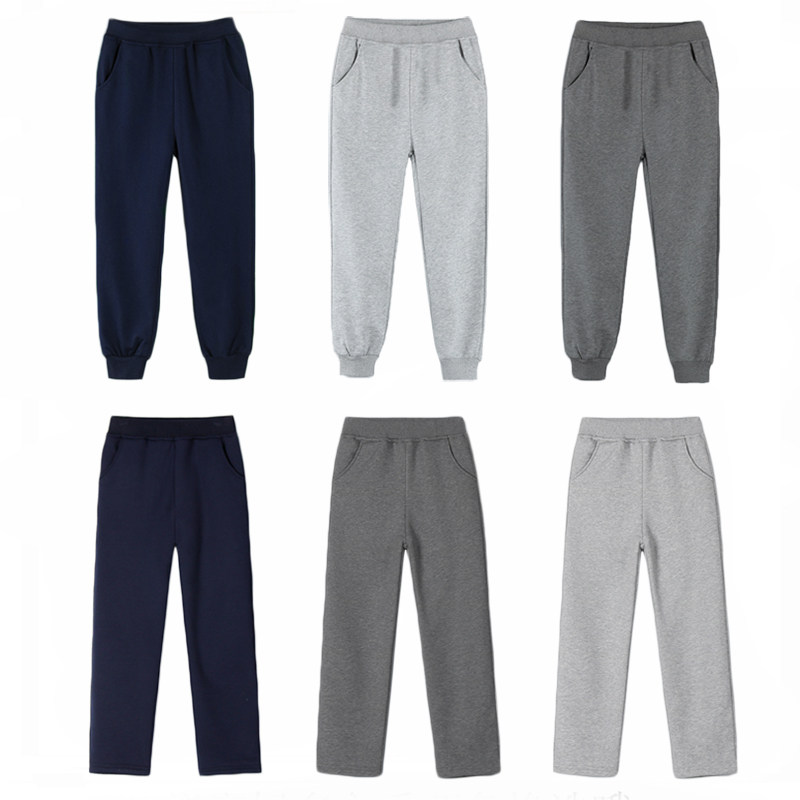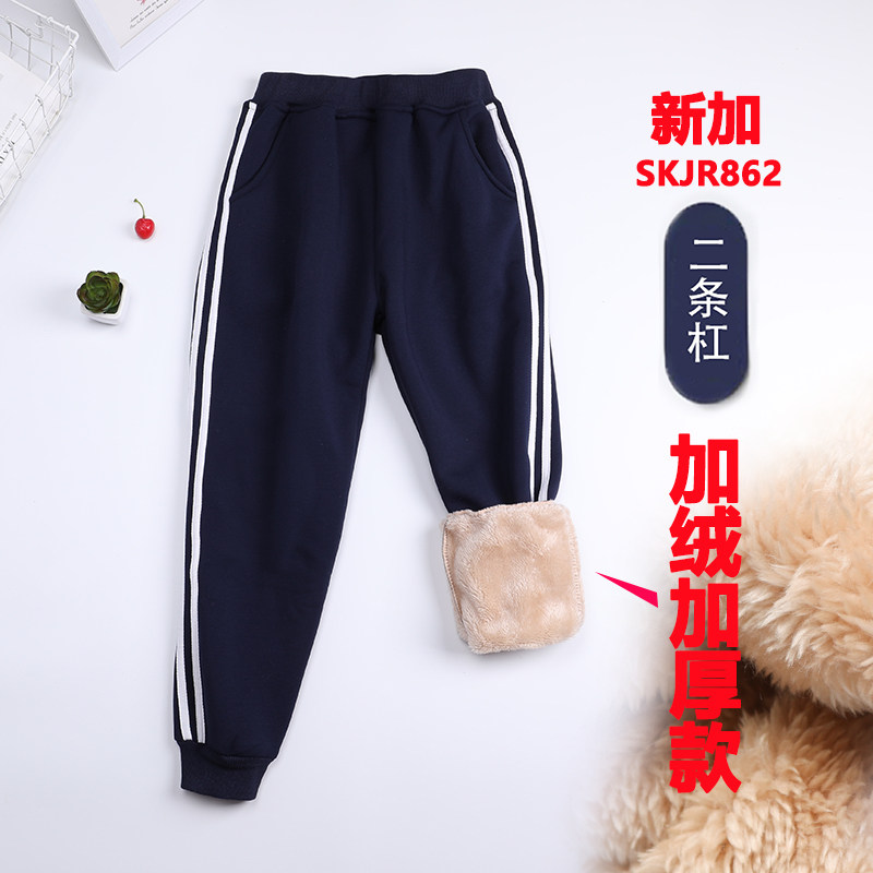Boy dark gray sports pants with velvet thickened winter style children pants girl hide dark blue elementary school uniforms pants