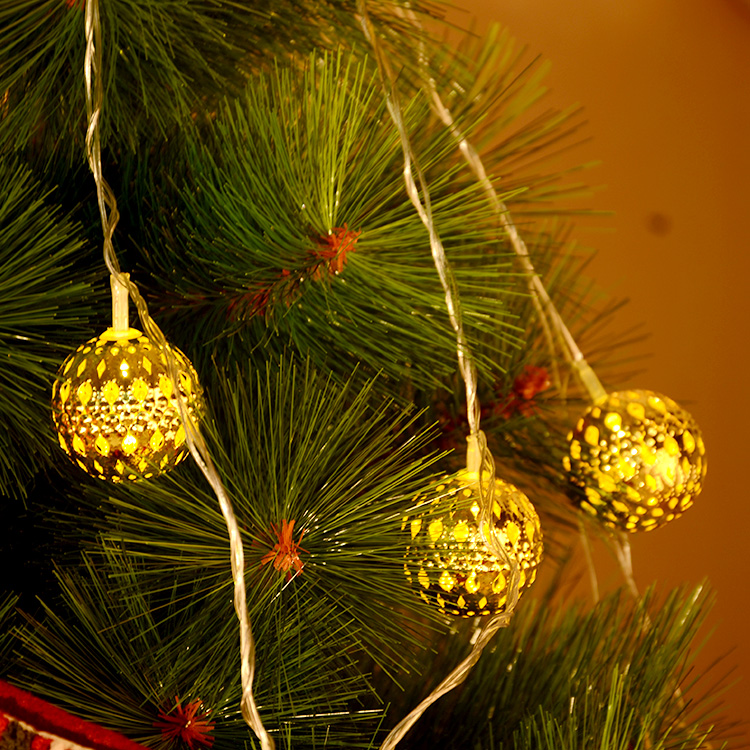 Christmas Festival Adornment Mesh Red Shivering Voice Anchor Seven Color LED Color Lights String Hollowed-out Metal Ball Light Room Arrangement