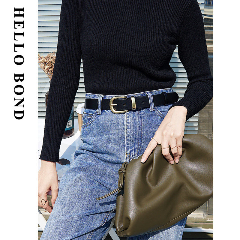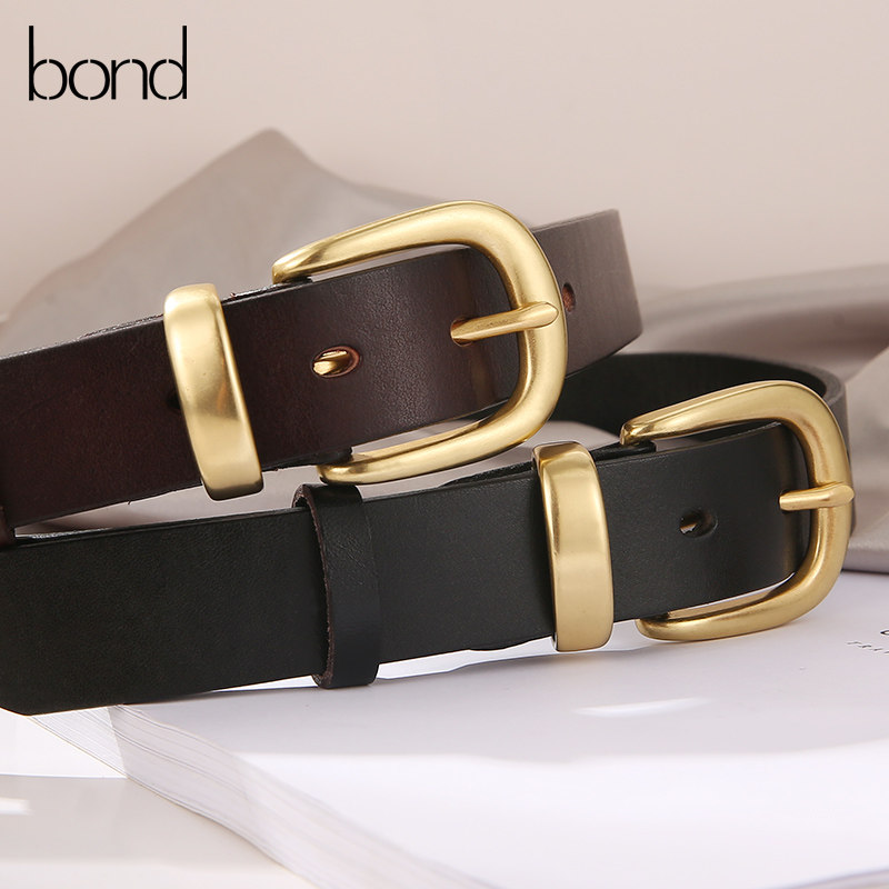 Belt women's leather top layer cowhide copper buckle fashion all-match belt casual youth simple pin buckle black belt