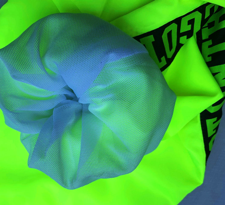 Fluorescent yellow with net lined male webbing with offset printing Please do not wash and soak