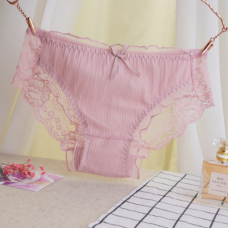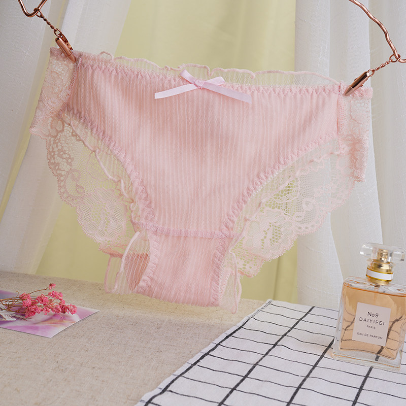 Japanese comfortable breathable chiffon sexy seamless mesh lace women's transparent underwear women's triangle mid-low waist large size