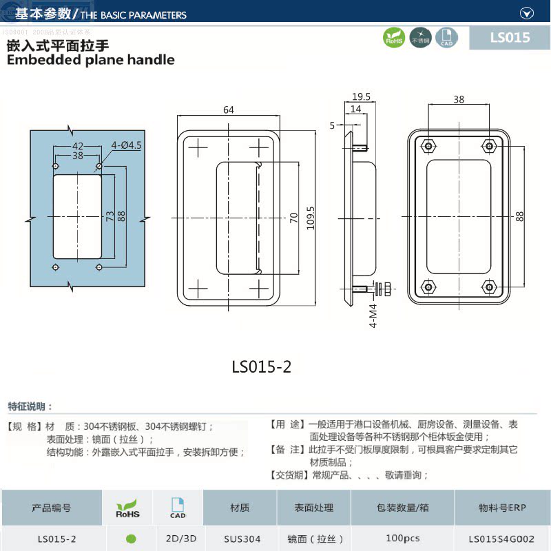 Haihui stainless steel hidden hand hidden secret hand pull LS015-2 embedded side handle invisible hidden pull