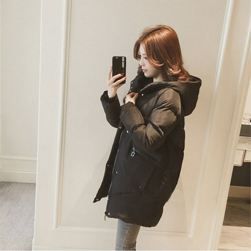Tide card 2021 Autumn winter new medium long version Korean version loose down cotton clothing Even hat bread thickened jacket woman