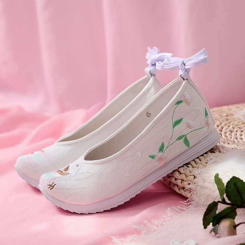 2020 spring new ancient costume embroidered shoes women's ethnic style Hanfu shoes ancient style high upturned cloth shoes