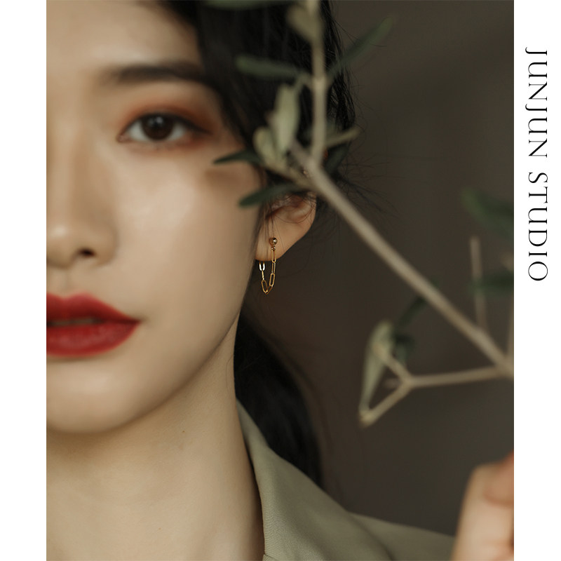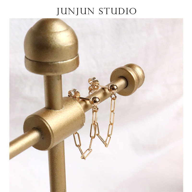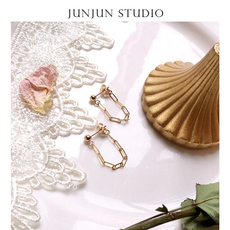 JUNJUN self-made minimalist ins style full metal ring chain earring earrings US 14k gold injection