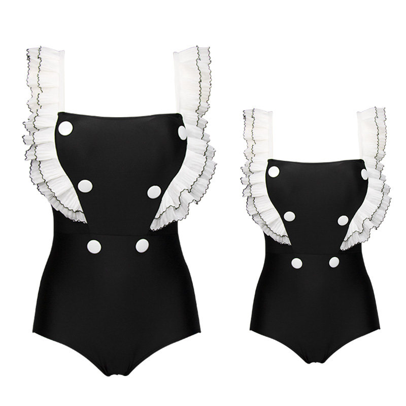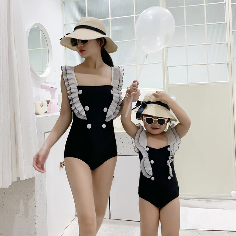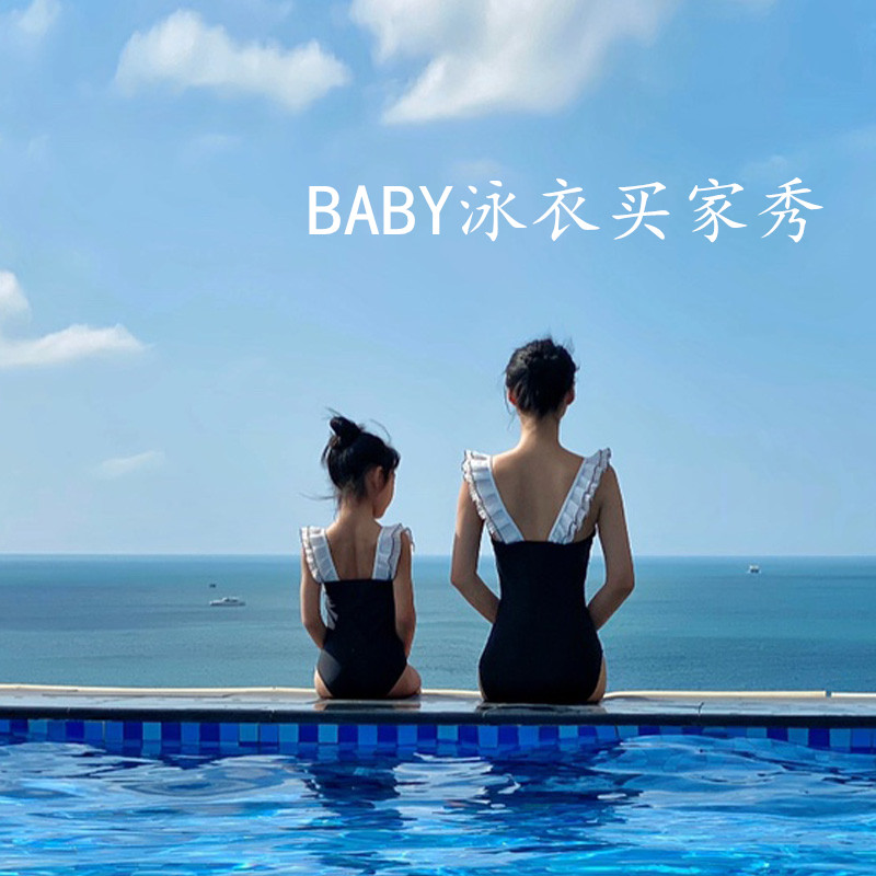 Parent-child swimsuit Mother and daughter swimsuit ins children's swimsuit ruffle hot spring swimsuit one-piece slim parent-child suit