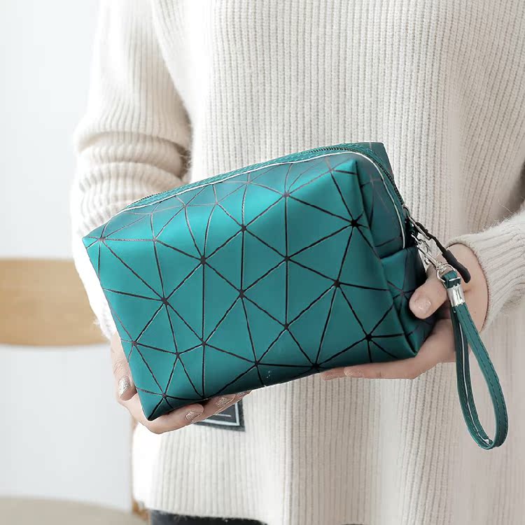 Makeup Bag Woman Portable Large Capacity Ins Wind Rhombus PU Brief Waterproof Travel Big Belly Cosmetic Containing Bag