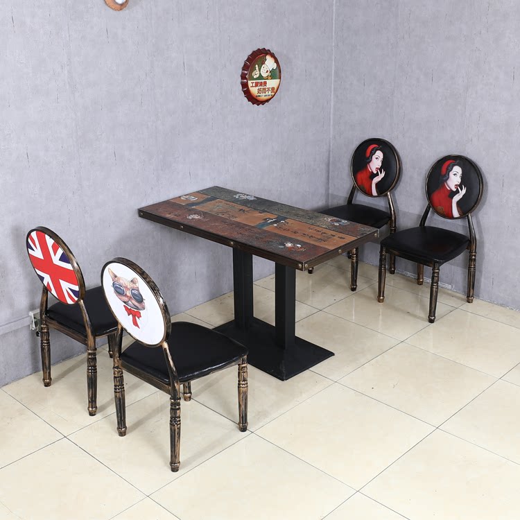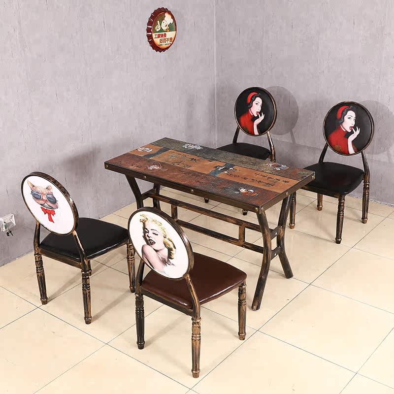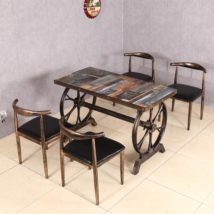 Retro industrial style theme bar dining room milk tea shop snack hot pot restaurant restaurant barbecue fast food restaurant table and chair combination
